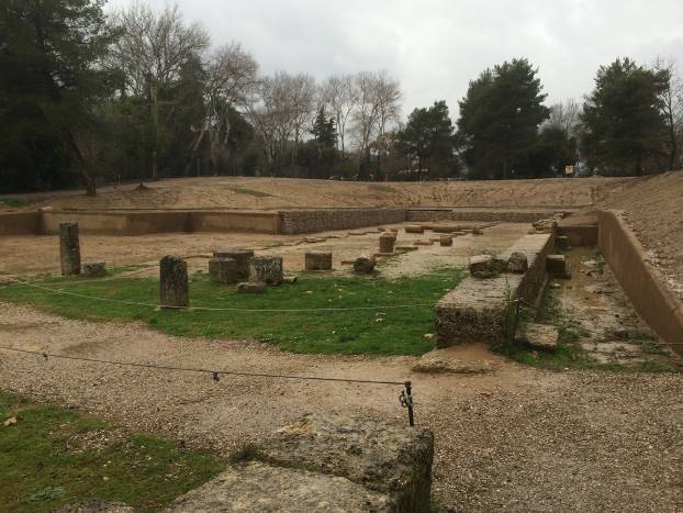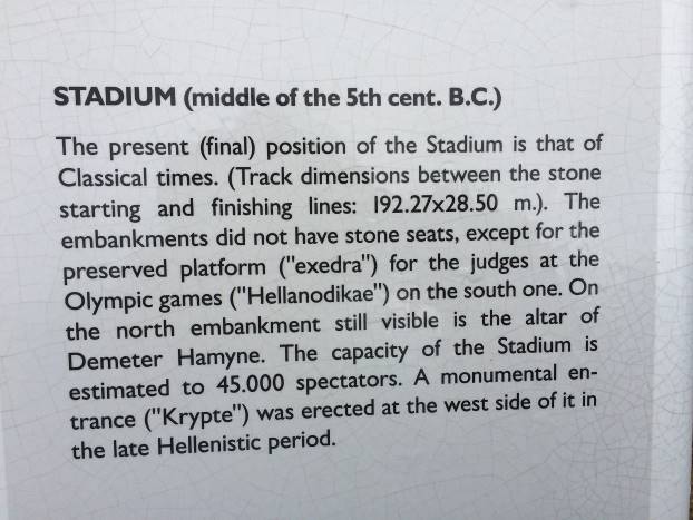 Platon i Aristotel su bili gosti na ovom pravougaonom stadionu koji je primao 45.000 posjetitelja. Tales iz Mileta je ovdje preminuo od srčanog udara izazvanog visokom temperaturom.