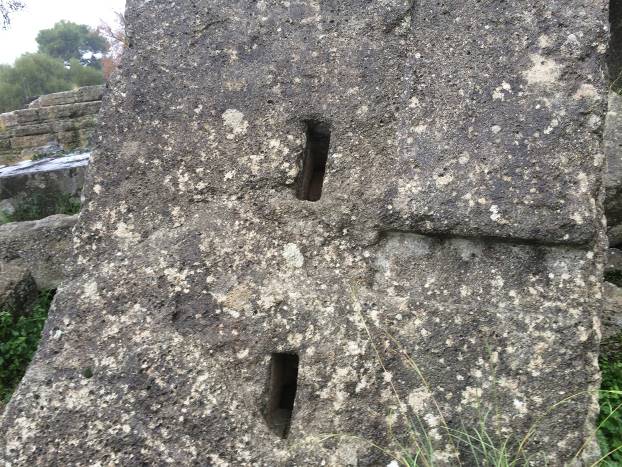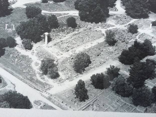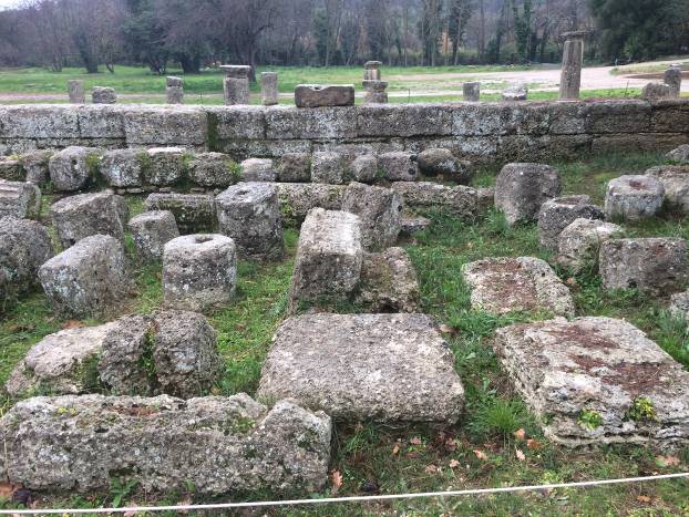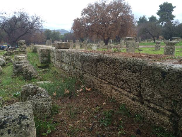Prve građevine Olimpije za material su koristile drvo. Slijedila je nepečena cigla. I jedno i drugo je vremenom nestalo, pretvorilo se u zemlju i prah. Ostali su samo kameni temelji,