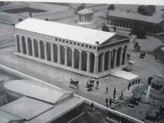 Sve značajne ličnosti stare Grčke ostavile su svoj pečat u Olimpiji. Najčuveniji kipar i umjetnik Starog vijeka Fidija je autor goleme Zeusove statue visoke 13,5 metara. Koristio je samo zlato i bjelokost. Statua sjedećeg Zeusa, koja je bilo jedno od sedam antičkih čuda, prvo je nestala u IV stoljeću, zatim pronađena i djelomično bila prenesena u Konstantinopolj, ali i tamo je zapaljena i uništena.