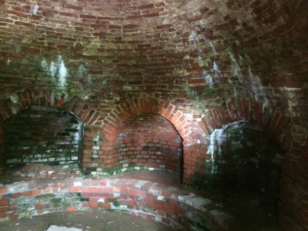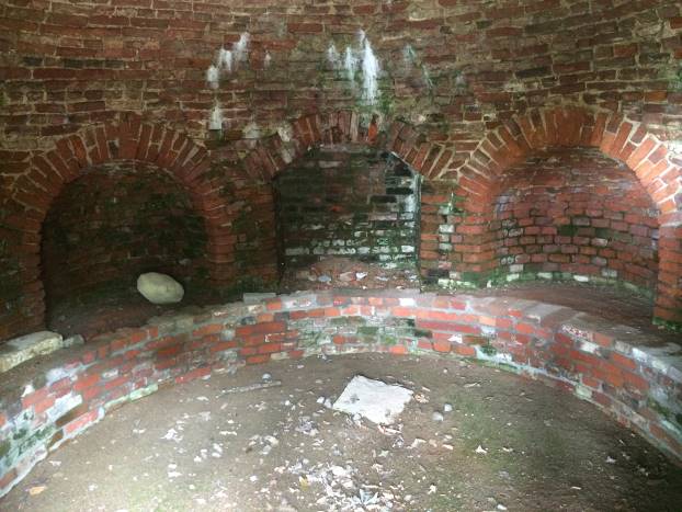 Unutrašnjost je ispunio kupolom od cigle. Kružna klupica i danas je vidljiva. Ulaz u centralnu prostoriju je zatvoren željeznom kapijom.
