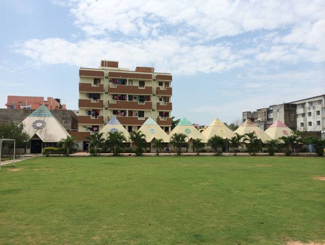 Kontakt za moj posjet, Ram, bio je na sastanku kada sam došao. Ušao sam u školski krug. Moderne zgrade, uredne. Školski autobusi, čisti parkovi, figure i statue u parkovima. Ono što odmah upada u oči je šest manjih piramida, uz nešto veći piramidalni hram. Još jedan Šivin hram u obliku piramide.