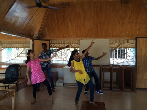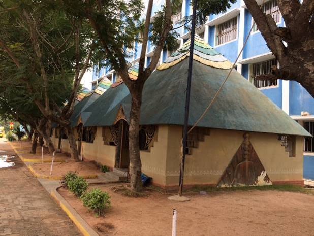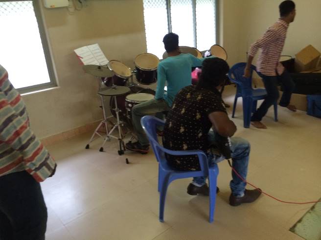 Do Šivinog hrama je šest piramidalnih krovova koji natkrivaju učionice za muziku. Ispred jedne prostorije dva mladića. Predstavljaju se kao studenti koledža koji je preko puta ove škole. Tu vježbaju sa svojom grupom za nastup na skorašnjoj priredbi. Ulazim unutra, pozdravljam se s članovima ansambla. Pitam ih koju vrst muzike sviraju. Zamolim za jednu pjesmu. Bubnjevi, električna gitara, orgulje i jak glas momka odjekuju i privlače nekoliko žena. Završavaju pjesmu, pozdravljam se s njima.