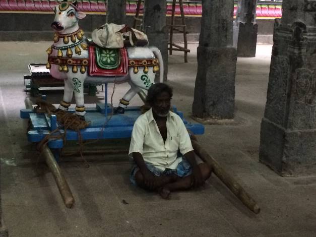 Svakodnevne procesije se odvijaju unutar hramova. Stari i mladi, jogiji i mali ženski horovi, poluodjeveni sveštenici s tri bijele linije na čelu. Ove linije simboliziraju tri čovjekove moći: moć kreacije, moć destrukcije i moć pomirenja.