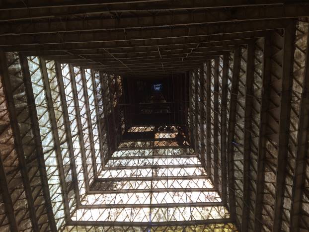 Ulazim u unutrašnjost piramide sa druge strane, kroz niski ulaz. Odjednom se preda mnom otvara veliki i izuzetno visoki prostor. Gledam prema vrhu. Praznina kao da se pruža do neba. Znam odranije da je piramida visoka 44 metra, ali osjećaj je kao da je duplo viša.