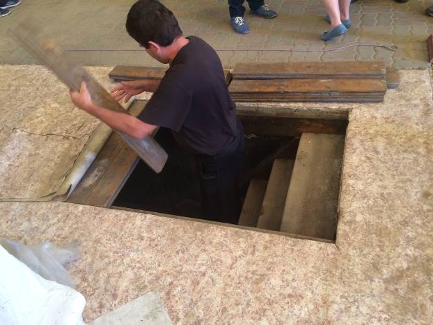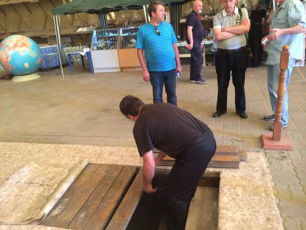 Vratili smo se u piramidu. Uputili smo se prema središtu. Mahnuo je jednom od prodavaca suvenira. Ovaj je prišao, uklonio ogradu, podigao tepih i počeo uklanjati drvene daske. Ispod njih se nalazio prolaz. Golod je sišao niz betonske stepenice. Pogledao sam u unutrašnjost: prostorija od desetak kvadrata (3,5×3,5 m).