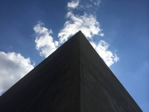 Dodirujem vanjske zidove. Fiberglas. Čvrst, ali ulegnut na nekoliko sekcija. Vjerovatno od naleta vjetra, kiše, snijega. Masa piramide je 55 tona. Uglovi su pružaju u ravnoj liniji sve do vrha. Sva četiri ugla su dobro očuvana.