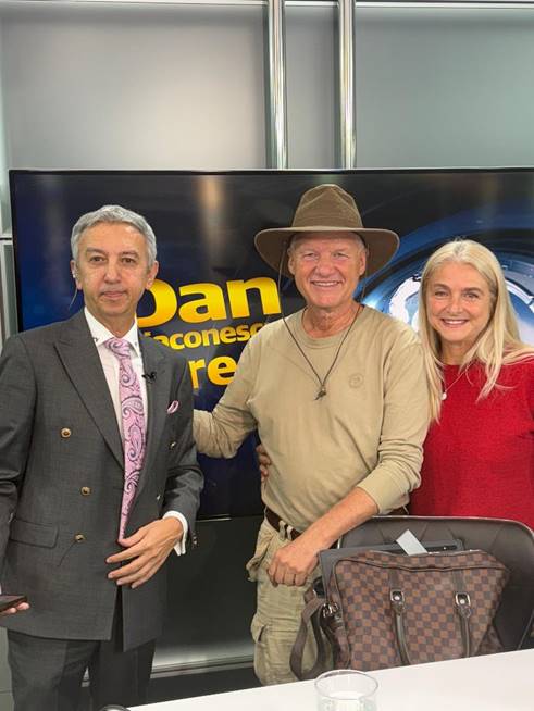 Posljednjeg dana posjete, 9. oktobra 2025. imao je televizijski intervju na ‘Kanalu 33’ kojeg je vodio Dan Diaconescu. Dr Osmanagić je najavljen kao pronalazač najvećih piramida na svijetu. Uz njega je u studiju bila i Juliana koja svake godine dovede po nekoliko grupa iz Rumunije u posjetu bosanskim piramidama.