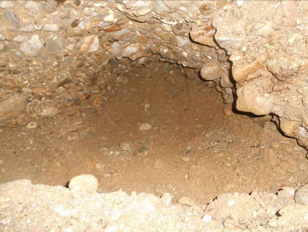 Tunel je do vrha ispunjen šljunkovitim, rastresitim materijalom. Radnici Fondacije ručno izbacuju taj rastresiti materijal i nastavljaju spori ali sigurni put prema najvećoj i najstarijoj piramidi na svijetu.