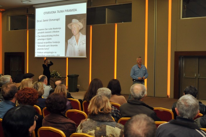 Predavanje “Piramide u svijetu i Bosanska dolina piramida” održano je večeras u hotelu Rixos Libertas, predavanje je održao pronalazač bosanskih piramida i najmlađi akademik Ruske akademije znanosti prof.dr. Semir Osmanagić.