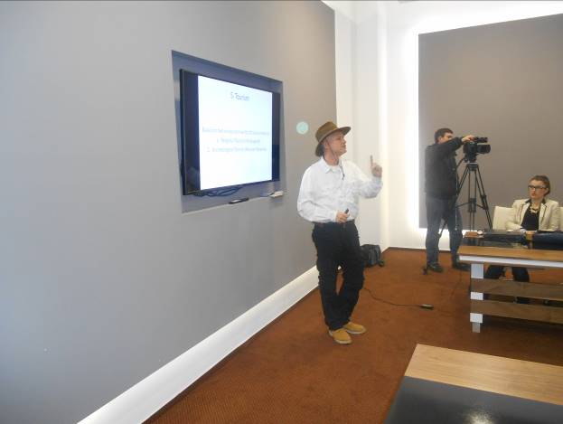 Osmanagić je održao 90-minutno predavanje na kojima je predstavio strategiju ekonomskog i političkog razvoja BiH u kojima arheološki turizam zauzima značajno mjesto kao jedan od motora ekonomskog razvoja zemlje. Pomenuo je primjer Hrvatske, koja sa sličnim brojem stanovnika, površinom i prirodnim ljepotama, ostvaruje 20 puta veći priliv u turizmu. Osmanagić je istakao da bi se unaprijeđenjem turističke infrastrukture i boljom promocijom, kroz religijski turizam (Međugorje) i arheološki turizam (Visoko) moglo privući nekoliko milona turista, koji bi BiH donijeli desetorostruko veći devizni priliv.