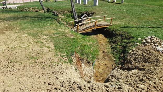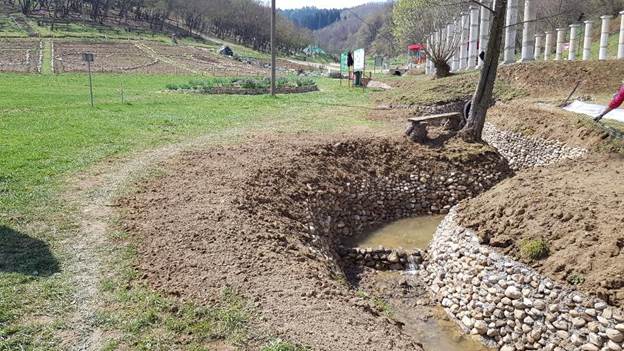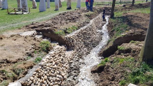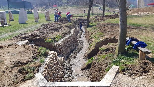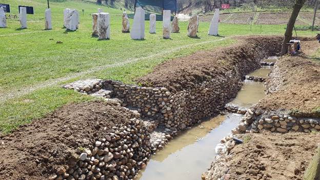 I mada Fondacija ‘Arheološki park: Bosanska piramida Sunca’ u ovom momentu nema nikakvih prihoda zbog restriktivnih mjera, ipak dio njenih saradnika vrijedno uređuje dijelove parka. Na red je u aprilu došla druga sekcija potoka u neposrednoj blizini instalacije ‘Vremeplov’. Neuredna obala je u samo desetak dana doživjela veliku transformaciju. Odroni zemlje, blatnjav potok, grane i smeće, ustupili su mjesto uređenoj kamenoj obali, oblucima koji imitiraju suhozidove iz tunela Ravne, četiri niza stepenica koji vode u potok, kamenom dnu sastavljenom od sitnog riječnog konglomerata…