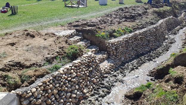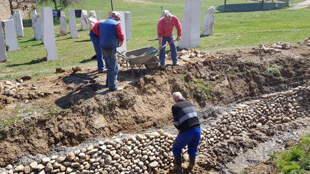 Radnici Fondacije su skupili kamene oblice iz tunela Ravne, Ljekovtih tunela, te tunela ‘Ravne 3’ i ‘Ravne 4’ (riječ je o hiljadama komada sličnih dimenzija). Obala je pojačana armaturnom mrežom i cementom, oblice su našle svoje mjesto kao lice. Nakon radova, vraćena je zemlja i zasađena trava. Od maja će trava dolaziti do ivice kamene obale.