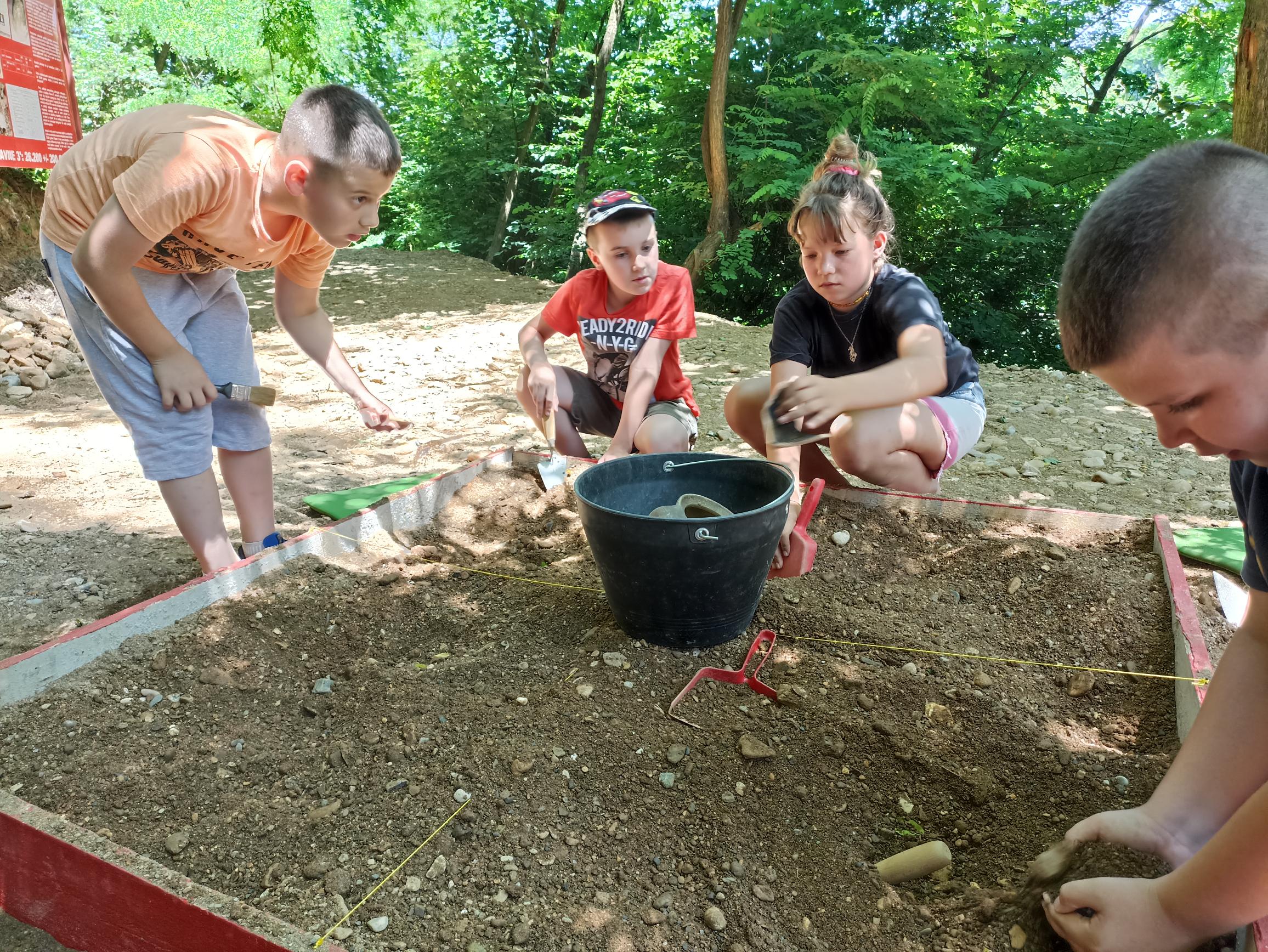 Polaznici u skupinama proveli su arheološko istraživanje u maloj sondi/pješčaniku. Kopali su, pronalazili, dokumentovali, crtali, čistili i spremali nalaze.