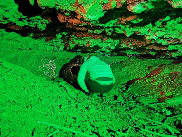 Kontrolna mjerenja su izvršena ispred ulaska u šupljinu. Tim se zatim provukao kroz uski prolaz visok 30 cm tačno u 9:15. Putovanje kroz prahistorijske tunele je trajalo puna dva sata. Izvršena su mjerenja na još dvije tačke u tunelima (na 22 metra od ulaza i na 60 metara od ulaza). Energetski parametri su izvanredni. Uvjeti su sigurni za boravak.