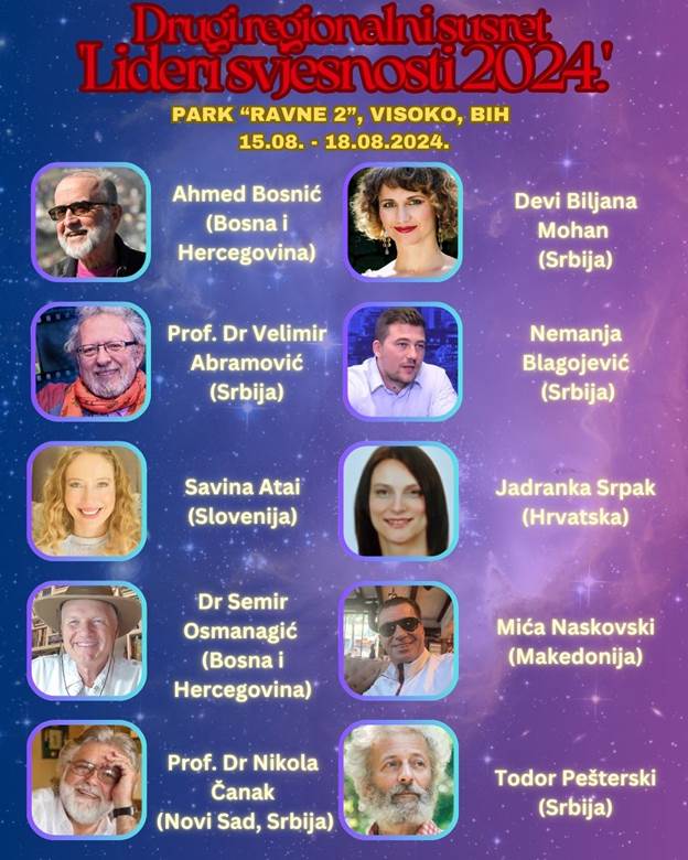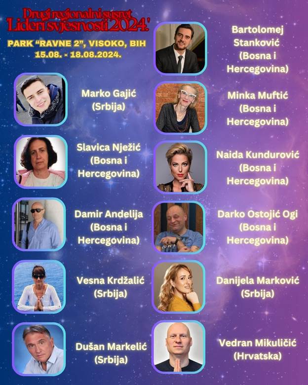 Dugo iščekivani regionalni događaj susreta ‘Lidera svjesnosti 2024’ napokon dolazi u najljepši evropski park ‘Arheološko-turističko-sportski park Ravne 2’ u Visokom. Skup duhovnosti, mira i saradnje bit će održan od četvrtka 15. avgusta 2024. do nedjelje 18. avgusta 2024. Organizator je Fondacija ‘Arheološki park: Bosanska piramida Sunca’ iz Visokog (BiH).