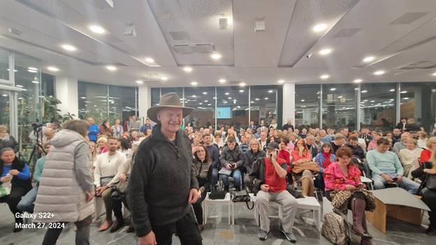 Nikad veći interes za jedno predavanje u knjižnici u Velenju. Tri stotitne ljudi se naguralo u konferencijski prostor moderne knjižnice 27. marta 2024. Više od polovine prisutnih je već bilo u posjeti bosanskim piramidama jednom ili više puta. Ovakva posjeta je vrlo jasna poruka onima iz arheološke zajednice Slovenije koji pokušavaju da zabrane Osmanagićeva predavanja u ovoj zemlji.