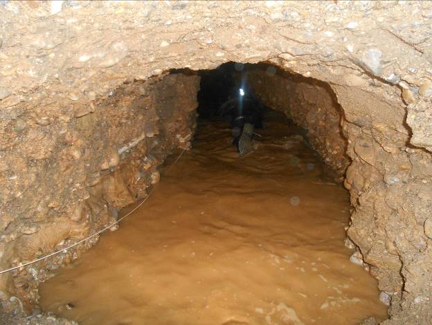 Na kraju ove vodene sekcije je prostorija od 30 kvadratnih metara koja završava ubačenim materijalom koji onemogućava daljnje kretanje. Prospekcija je pokazala da se na tom mjestu tuneli račvaju u dva pravca, oba prema jugu i jugoistoku, te da su zatrpani do samog plafona.