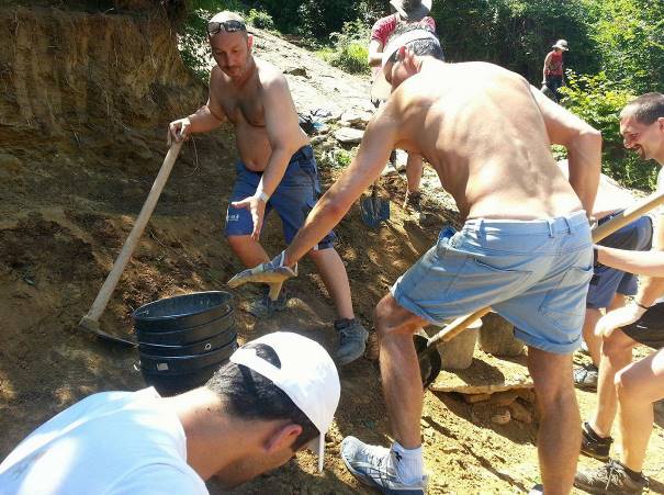 Njihov posao nastavili su mnogobrojni dobrovoljci vrelog jula i augusta kada se znalo desiti da imamo preko 40 volontera odjednom. Vješto rukovodeći ovom ekipom i organizirajući „duple lance“ zajedno sa mojim vrijednim pomagačima Tarikom iz Visokog i Marrie-Sophie iz Francuske, uspjeli smo za kratko vrijeme ukloniti velike naslage humusa. U isto vrijeme smo svaki dan iza sebe ostavljali uređenu i čistu lokaciju za mnogobrojne goste koji su tih dana zapanjeno posmatrali ogromne konglomeratne betonske blokove kako se nastavljaju jedan na drugi zajedno sa volonterima koji sa osmijehom i pjesmom onako prašnjavi prenose kante iz ruke u ruku. Pored informacija koje su im predstavljali naši stručni vodiči ovo je bila savršena „lekcija“ i sve što su trebali da vide da bi se počeli raspitivati kako i oni da budu dio ekipe.