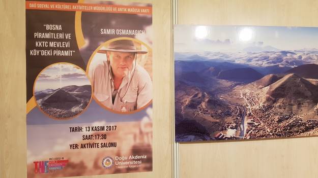 Osmanagić je bio gost najvećeg univerziteta EMU – Eastern Mediterranean University iz Gazameguse (Famagusta). On je u Kulturnom centru Univerziteta održao predavanje 13. novembra na temu “Bosanske piramide i Mevlevi megaliti na Cipru”. Pred 120 prisutnih, od kojih su većina bili studenti, govorio je o pravoj svrsi i datiranju piramida i interdisciplinarnom naučnom pristupu. Posebnu pozornost su izazvale informacije o potencijalnoj piramidi na sjeverozapadu otoka, kao i potencijalna megalitna lokacija Mevlevi s višetonskim megalitima, koji do sada nisu arheološki obrađivani.