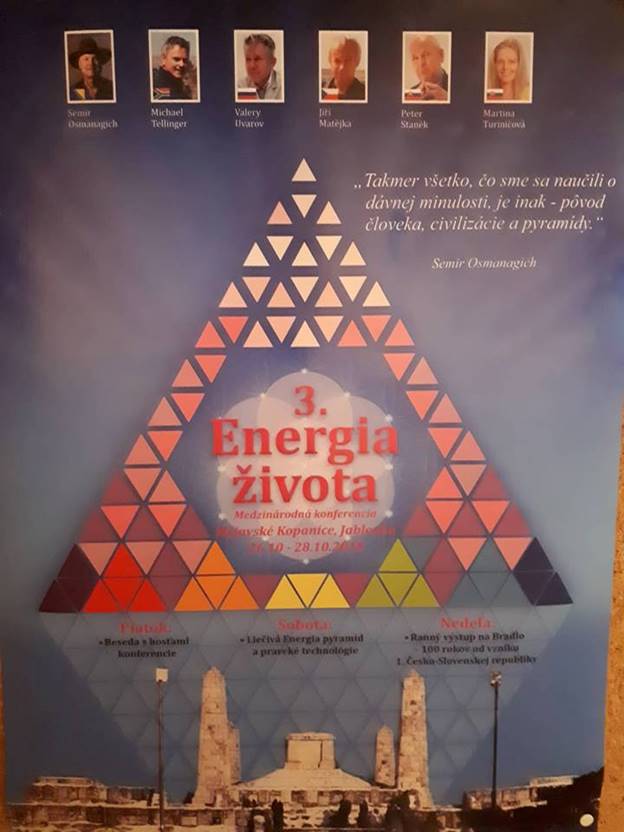 U blizini Bratislave u Slovačkoj, održana je treća po redu konferencija ‘Energija života’ od 26.-28. oktobra 2018. Na ovoj međunarodnoj konferenciji predavači su bili Michael Tellinger iz Južnoafričke Republike, Valeri Uvarov iz Rusije, Semir Osmanagić iz Bosne i Hercegovine, Peter Stanek iz Slovačke i Jiri Matejka iz Češke Republike.