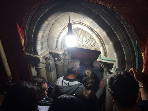 Brojni vjernici su ispred mene. U atmosferi se osjeća poseban ugođaj: iščekivanje, susret s mjestom gdje je rođen “sin Božji”. Neki od posjetilaca padaju ničice na koljena, ljube zvijezdu, pružaju ruku prema rupi da osjete strujanje zraka. Mnogima je ovo trenutak kojeg nikada neće zaboraviti, jer su ga odavno priželjkivali. Naravno, sijevaju blicevi, foto aparati se ovdje ne gase.