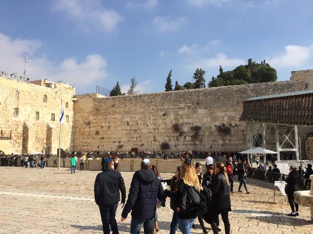 Jeruzalem je danas milionski grad s dvije trećine jevrejskog stanovništva. Karakteristične kape, odore, brade, sreću se na ulici. Panoramom grada dominiraju Brdo maslina, hramovi i crkve koje su podizale različite kulture i onda zidine u kojima su smještene četiri četvrti. Obilazak započinjem sa zapadnom, jevrejskom. Masivan zid, nekoliko puta dograđivan, vrvi od turista, ali i jevreja kojima je ovo poseban dan. Mjesto za molitvu je 57 metara dugačka sekcija zida, mada je, formalno, zapadni zid gotovo 500 metara dug.