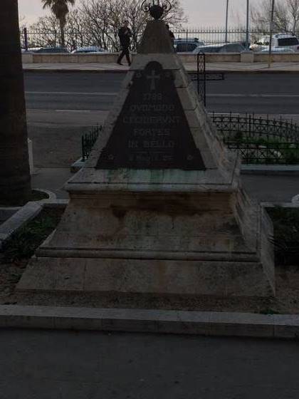 Znatno kasnije, podigli su i granitni spomenik u obliku piramide iznad masovne grobnice. Na piramidi je natpis: “Kako su veliki i moćni pali u bici”. Piramida je ostala kao vječan spomen na Napoleonov neuspio pokušaj osvajanja koji je krenuo iz Egipta, države piramida, prema istoku.