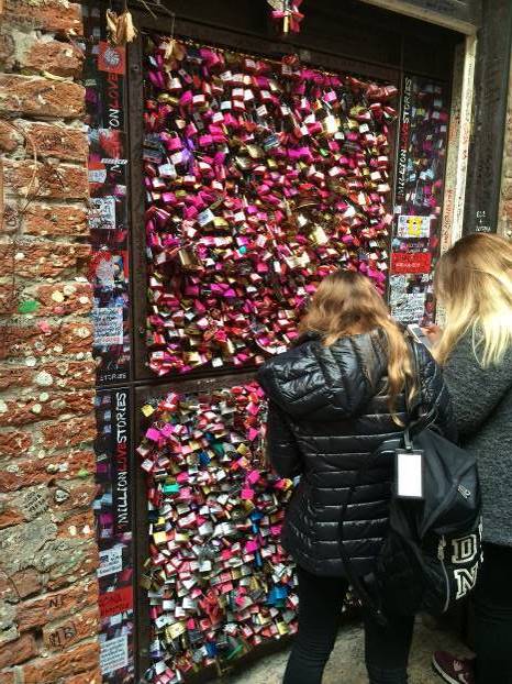 Oko mene su male radnjice s natpisima srednjevjekovnih ljubavnika, na nekoliko mjesta su zidovi na kojima se ostavljaju poruke s imenima zaljubljenih te grafiti s imenima iz čitavog svijeta.