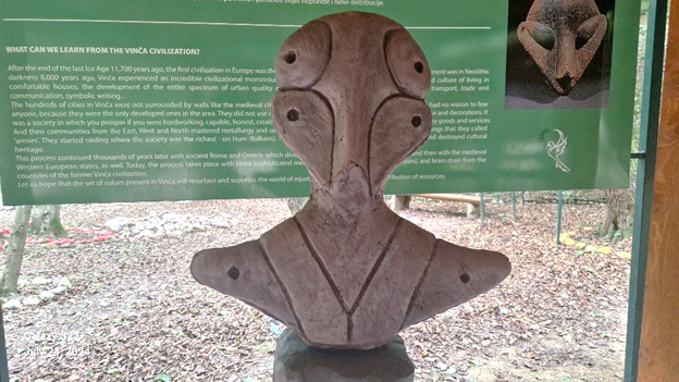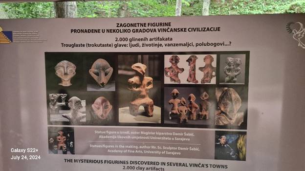 Akademski kipar magistar Damir Šabić iz Sarajeva izradio je replike nekoliko misterioznih artifakata pronađenih u tri grada Vinčanske civilizacije. Likovi predstavljaju najvjerovatnije ‘polubogove’ i imaju trouglaste glave i izdužene, neljudske oči.