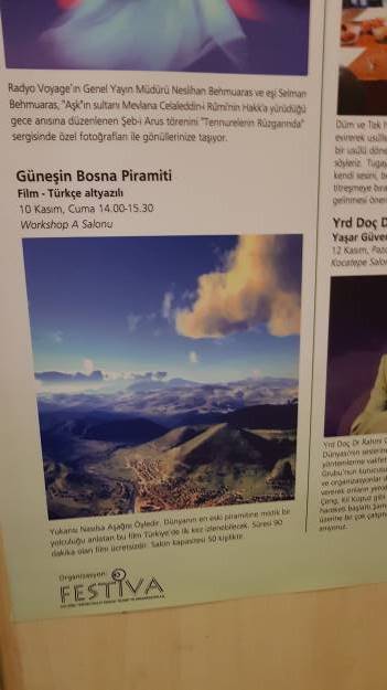 Predstavnica Fondacije za Tursku Ferhan Gurbuz sa svojim saradnicima je prevela film kanadsko-bosanskog rezisera Vinka Totića o bosanskim piramidama “Kako na nebu tako i na zemlji” koji je prikazan drugog dana Festivala. Na štandu su ponudjene knjige dr. Semira Osmanagića na turskom jeziku o otkriću bosanskih piramida, kao i druga izdanja na engleskom jeziku (“Energetske tačke Planete”, “Nova arheologija: Megaliti i energija Planete”, “Sve piramide svijeta i Bosanska dolina piramida”). Također, promovirana je i posjeta Visokom za ljetni solsticij (17.-23. juni 2018. i 19.-23. juni 2018.).
