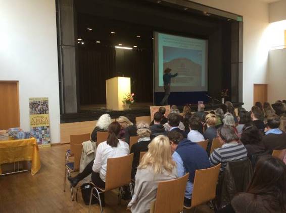 Izlazak dr. Osmanagića na podij dvorane u Minhenu dočekan je burnim i dugotrajnim aplauzom. On je govorio o naučnim, energetskim i ljekovitim aspektima piramida u Visokom. Ujedno je prvi put promovirao set naučnih kriterija za piramide.