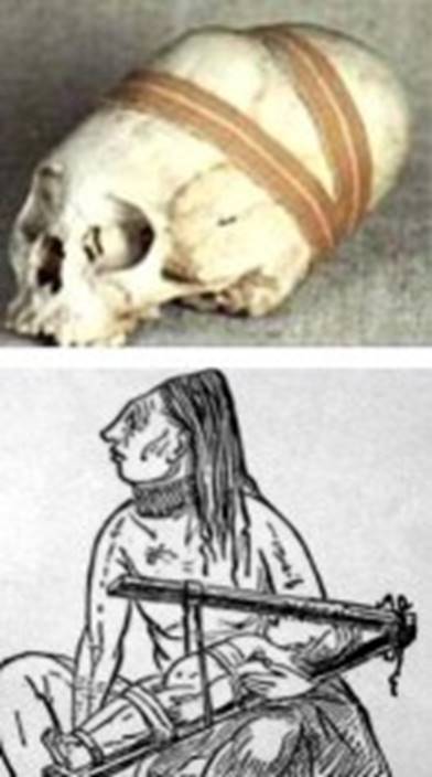 Kod Maja je sličan običaj. Pronađene lubanje imaju ravne stranice. Njihovi ‘bogovi” su, očigledno, drugačije izgledali.