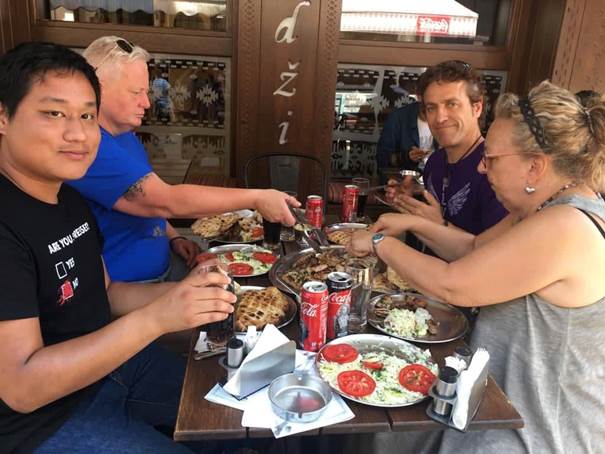Čitavo iskustvo uvijek dobro upotpuni naša domaća bosanska hrana. Na zaboravljam im nikada naglasiti da nemamo genetski modificirane uzgojene biljke i da su sjemena koja naši farmeri koriste za uzgoj povrća ista ona koja su stotinama godina koristili njihovi pradjedovi. Tradicija organskog uzgoja voća i povrća se osjeti okusom kao i energija koja je uložena u njeno pripremanje. Zato je jedan od uslova za naše dobavljače hrane, koji su obično lokalna udruženja žena, da su nasmijani i da kuhaju s ljubavlju. Sočna hrana tada dobija i šestočulni doživljaj pa se naši volonteri nakon jela još dugo zadržavaju za stolom, odmarajući s punim stomacima i blaženim osmijehom na licima.