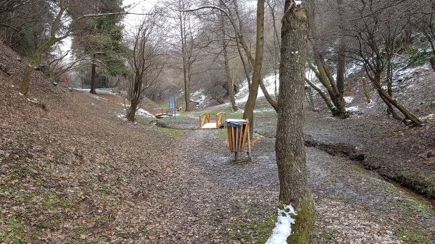 Mostovi dostojanstveno nose svoj prvi snijeg. Poneki posjetilac uživa i u zimskoj idili koju sa sobom nosi park dobre energije i koji ih čitavu godinu šarmira.