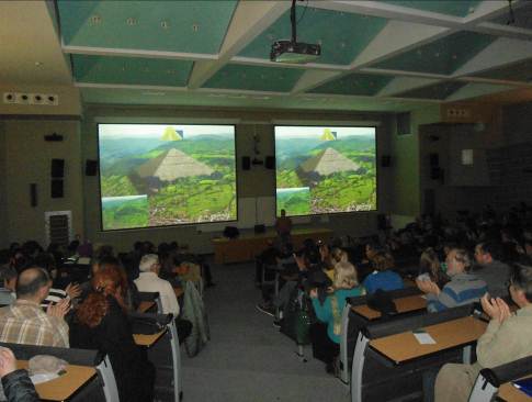 The largest amphitheater of the Faculty of Economics, University of Split was again filled to capacity on Friday, February 15th, 2013. More than 350 visitors with great care attended a two and half hour lecture by Dr. Semir Osmanagic of a phenomenon of the world of pyramids and Bosnian pyramids.