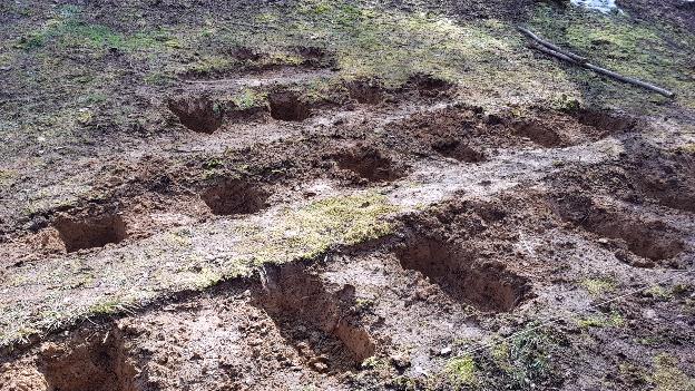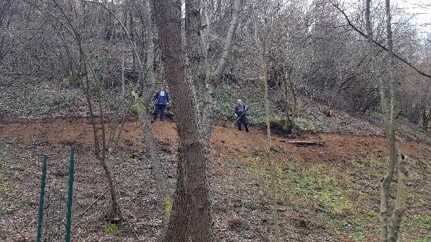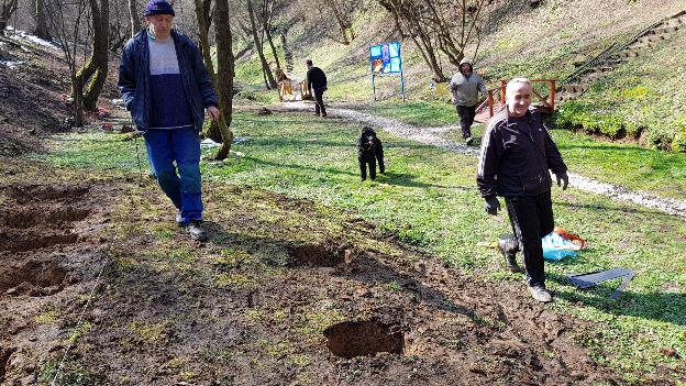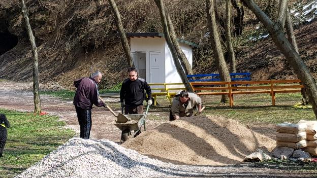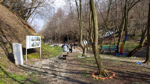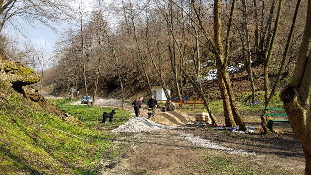 The trail comes out on a small rampart where the pitch is being prepared for setting up ten benches. The benches will be placed in the form of a pyramid (4 + 3 + 2 + 1). Their function will be multiple: to accommodate participants in workshops, lectures, meditations, or simply relaxation and rest of visitors.