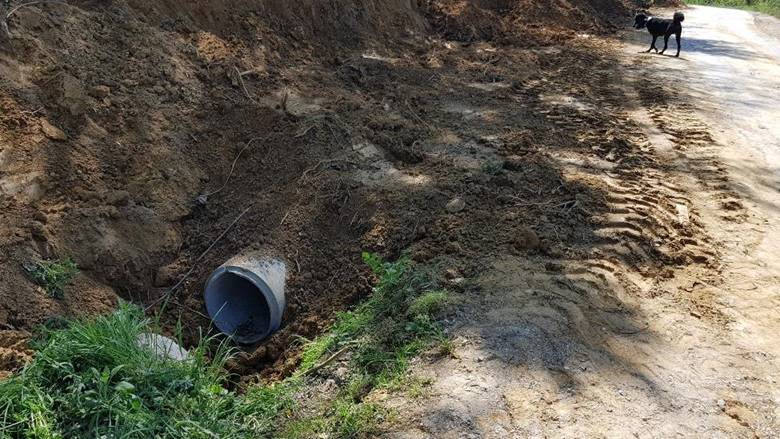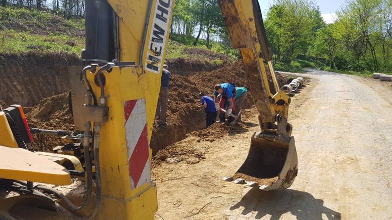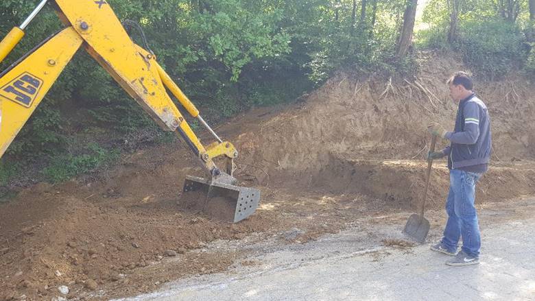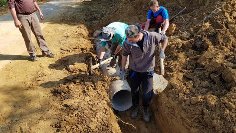 Next to the road at the Municipal parcel, the Foundation’s team has broadened the flat area, leveled the terrain, dug the canals and laid down the drainage concrete pipes, free of charge. At the same time, existing clogged pipes were cleaned and the water drainage tranches were covered with earth.