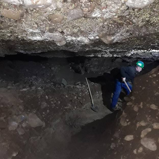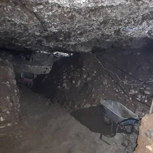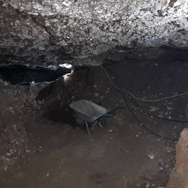 Lighting is set in all locations. A team led by an experienced miner worker to place a protective wooden supports at all three locations. Along with the use of protective equipment, the Foundation workers are removing filler gravel material from the sealed tunnels.
