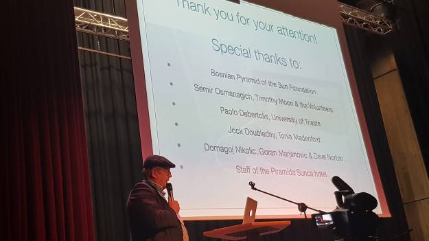 When Osmanagich presentation finished, the associate of the “Archaeological Park: Bosnian Pyramid of the Sun” Foundation Heikki Savolainen, the sound engineer from Helsinki, also spoke. He has illustrated his presentation with a series of charts and tables about recordings of the energy phenomena which doubtlessly prove the connection between the Bosnian Pyramid of the Sun and the Tunnels Ravne, and the existence of the vertical energy discharge at the top of the Bosnian Pyramid of the Sun, and the key role of the water which has been found in the Tunnels Ravne.