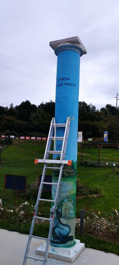 Artists are currently writing the names of the locations and the countries with the pyramids and megalithic sites.