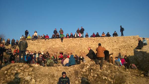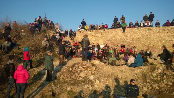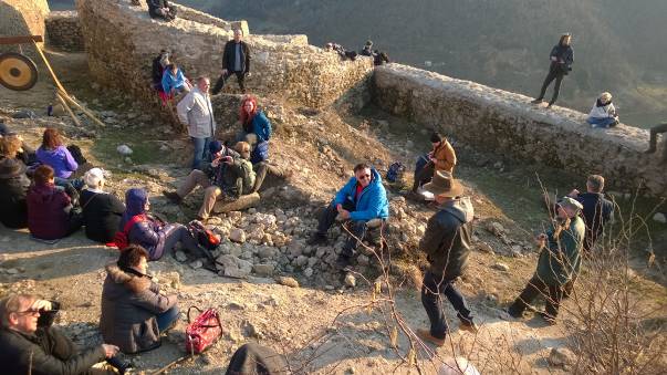 The guests were welcomed by the researcher Dr. Sam Osmanagich. He spoke about the location of several cultural layers: a medieval fortress, ancient Roman watchtower and the Illyrian settlement, and that they are all located on the top of an ancient pyramid structure. He also mentioned a significance of the Spring Equinox.