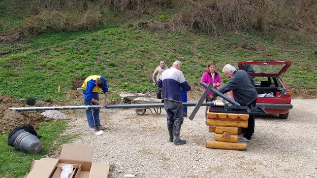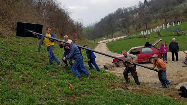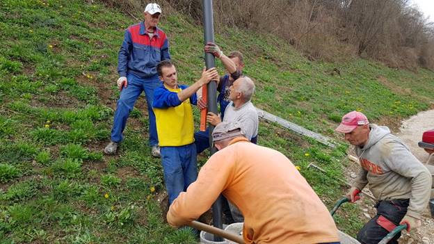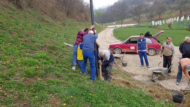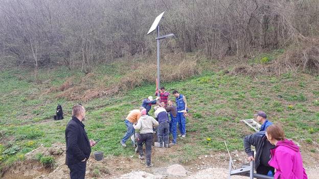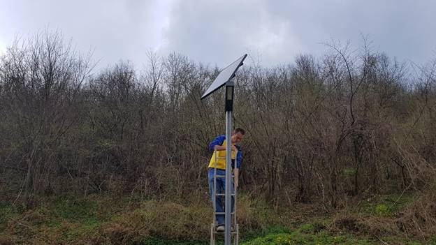 The installation of the first solar lamp in the park “Ravne 2” was carried out by employees of the Foundation “Archeological Park: Bosnian Pyramid of the Sun” on April 10, 2019. The beginning of the installation was attended by the deputy Mayor of the municipality of Visoko Emir Fejzović with employees of the Department for Local Economic Development.