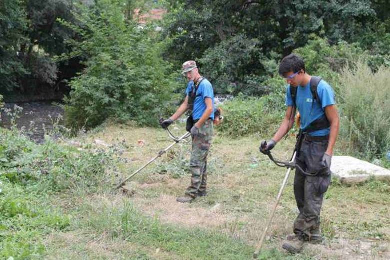 The Foundation employed own workers where the manual work was needed. The trimmers, chainsaws and scythe were used to remove the grass, weed and bushes and also used to shape the treetops on the Municipal land. The trees on the river bank are brought to a fair condition by removing the dry and lower branches.