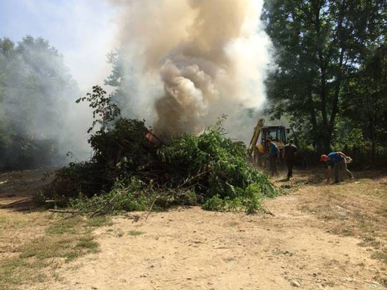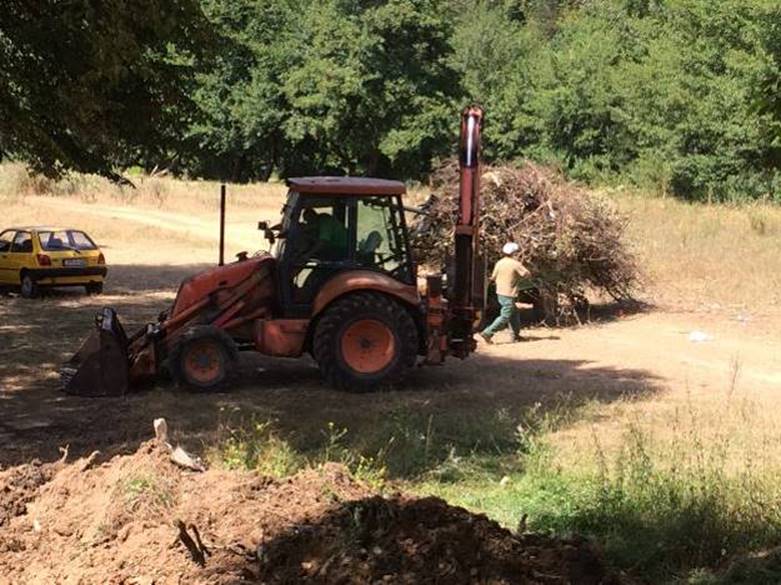 The Foundation has employed the tractor with a mowing machine so the stadium lawn had decent looks with the low cut grass. Also, the Foundation has hired the excavator to remove large quantities of junk, concrete waste and glass at several locations. The Public Communal Service “Visoko” is removing the piles of dried branches and junk.