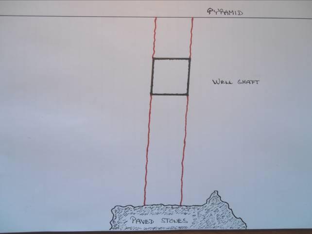 My sketch show the submerged Canal the then later made Well Shaft and Canals direction to middle area under the Pyramid. This Canal may be up to a 140 meters long.