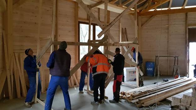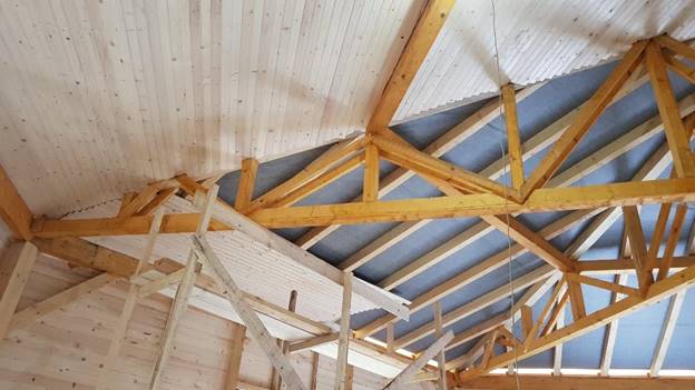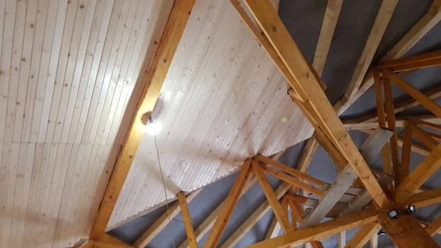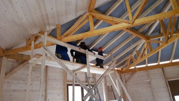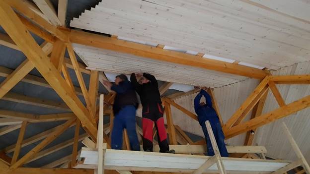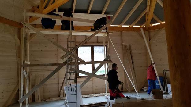 Installation of internal insulation of the hall are under way. Wood wall cladding and styrofoam are used to seal the ceilings, and later it will be the turn to do the same with the walls. This will add not only to proper insulation of the hall, but also to a cozier appearance of this chamber, through use of natural materials.