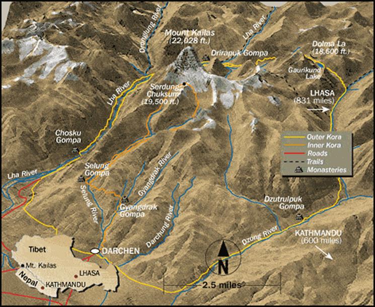 Kailash is 6714 meters tall and it’s believed that no one ever climbed to the top of this mountain. However, some people got the special permits to climb to the top, but because of the international pressure, they didn’t dare to attempt it. The members of all the religions mentioned above think that the climbing would be considered as the desecration and certain death for the climbers. On the other hand, Kailash Cora is the act of respect for the natural pyramid and the sign of good fortune. For many people, this is the chance to be released of the sins, or to earn the merit, and to get the own divine spirituality.