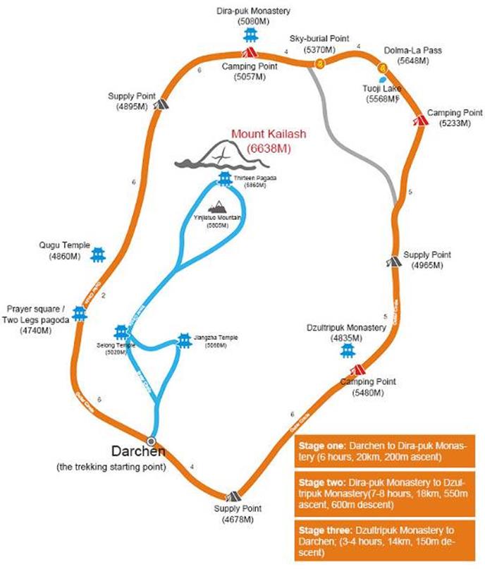 “First, you will have to ascend than it will be flat, after are another ascent and a plateau, later on, is the third highest ascent and reaching the saddle Drolma La on the 5630 meters of the altitude. Later are the descent and a long plateau.”