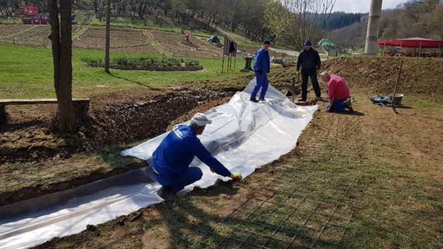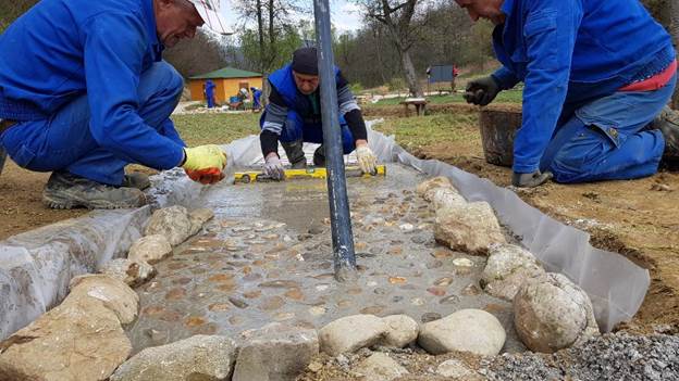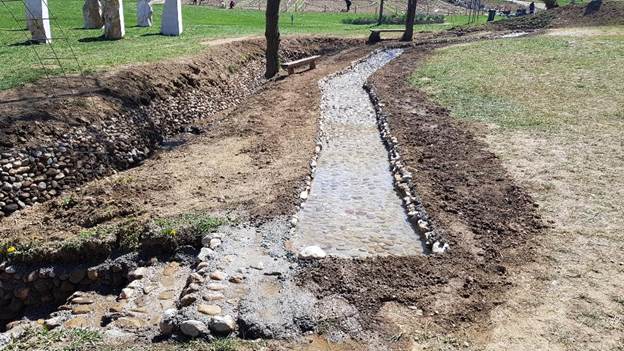 In the middle of April 2020, a new installation was made and opened at the ‘Archeological and Tourist Park Ravne 2’. It is a water foot massage track. It is located in the immediate vicinity of the ‘Time Machine’ installation and is set parallel to the existing stream whose shore was reconstructed by the workers of the ‘Archeological Park: Bosnian Pyramid of the Sun’ Foundation.