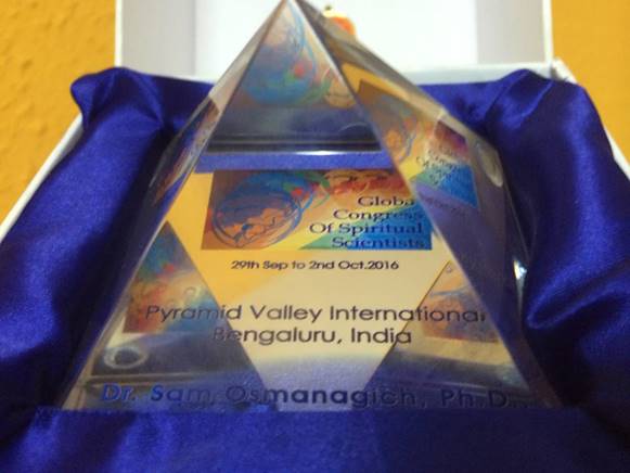 This has been the first time that is given this award. 450 participants of the 9th Congress of Spiritual Scientists. The award was presented by the Pyramid Valley International, Bengaluru, The organizer of the ninth Congress was PSSM (” Pyramid Spiritual Societies Movement “). The Congress was held in the Great Pyramid built in 2012 exclusively for meditation, which has a capacity of five thousand visitors. Dr. Osmanagich was the keynote speaker at the Congress.